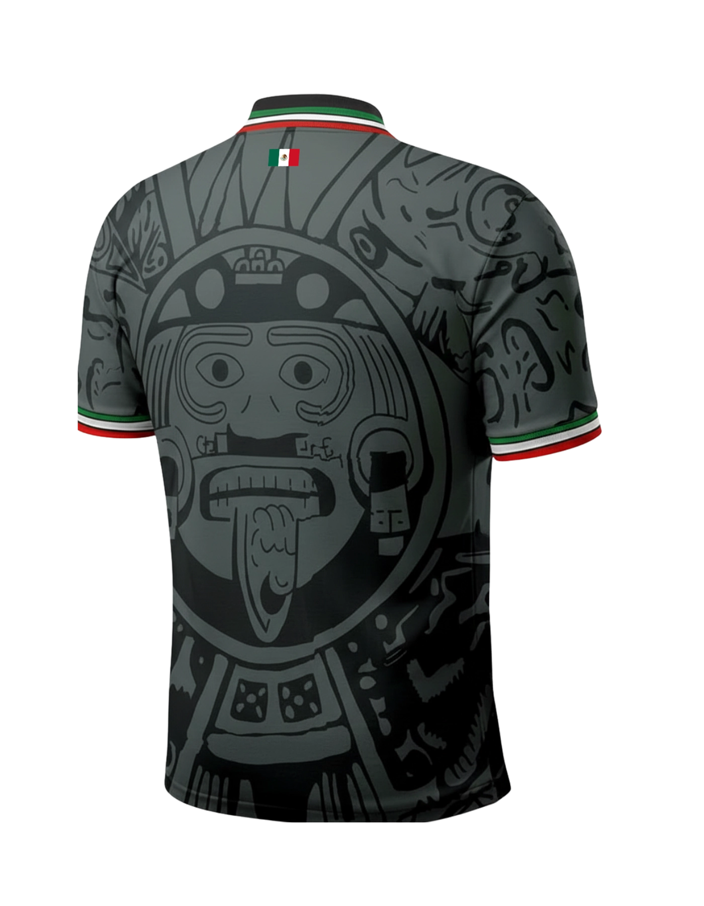 Esta playera cuenta con solo 2 piezas de tela para respetar la figura del calendario azteca. El corte y la figura es igual que el de la playera original 1996-1998