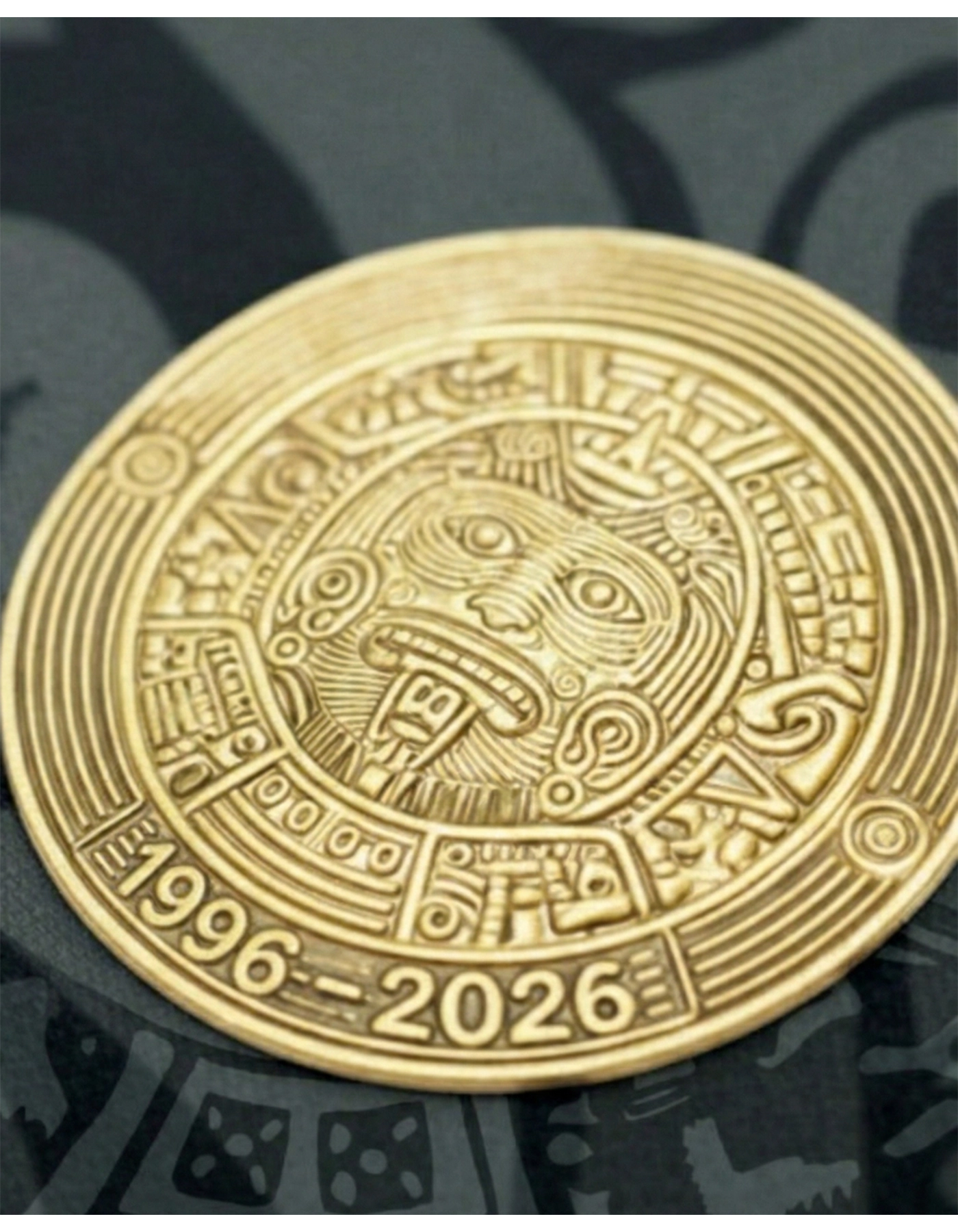 Tiene atributos como un emblema dorado de 30 aniversario, logotipos con textura, holograma de autenticación y bandera de Mexico en espalda.